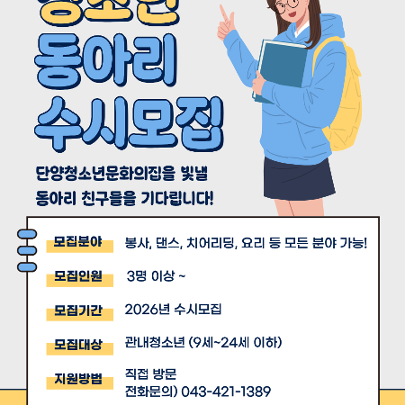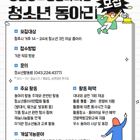2025년도 청원청소년문화의집 "청소년동아리" 모집
