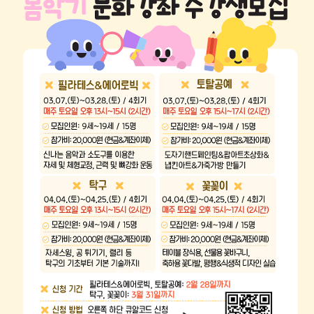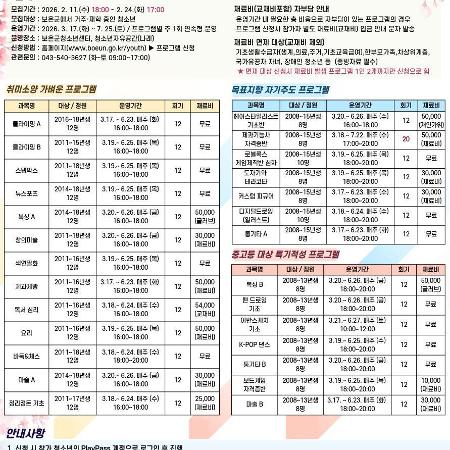 제천시청소년센터 봄학기 문화강좌 수강생 모집