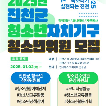 2025년 진천군 청소년자치기구 청소년위원 모집