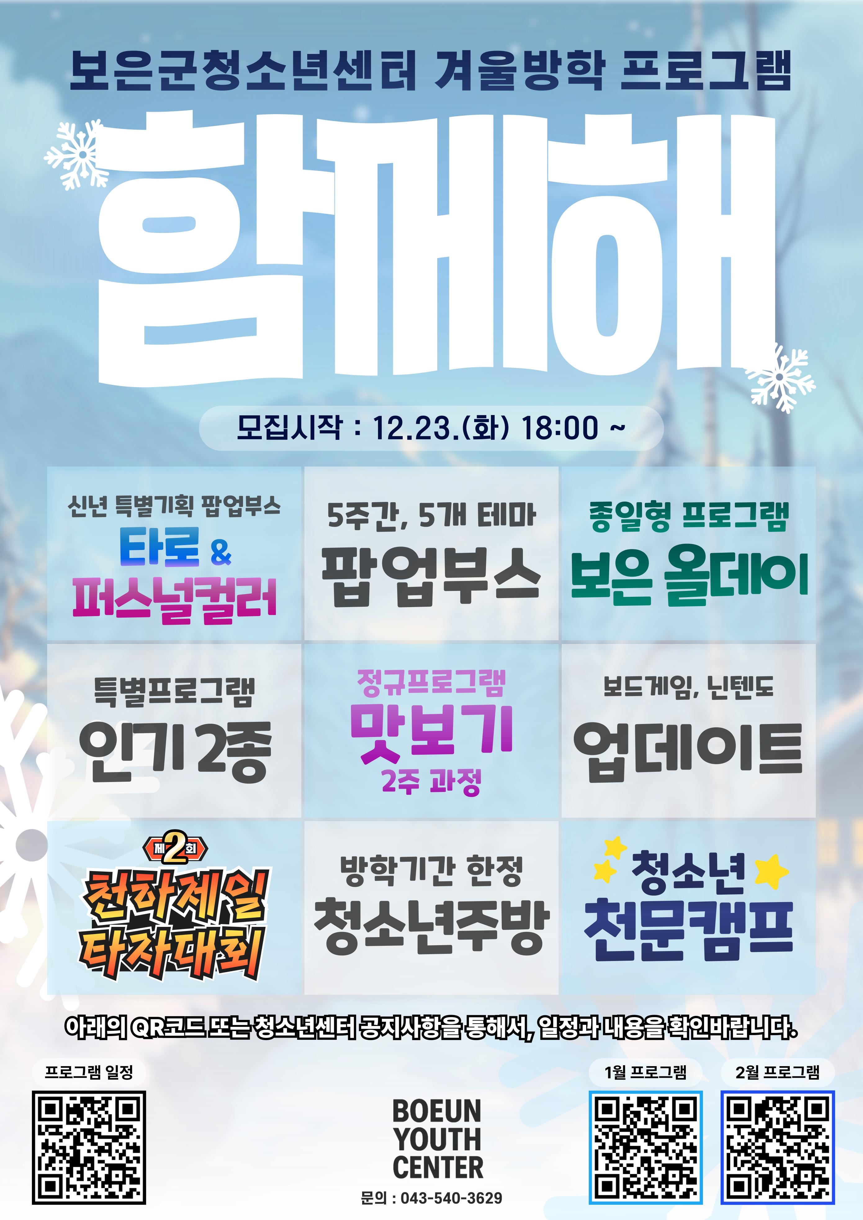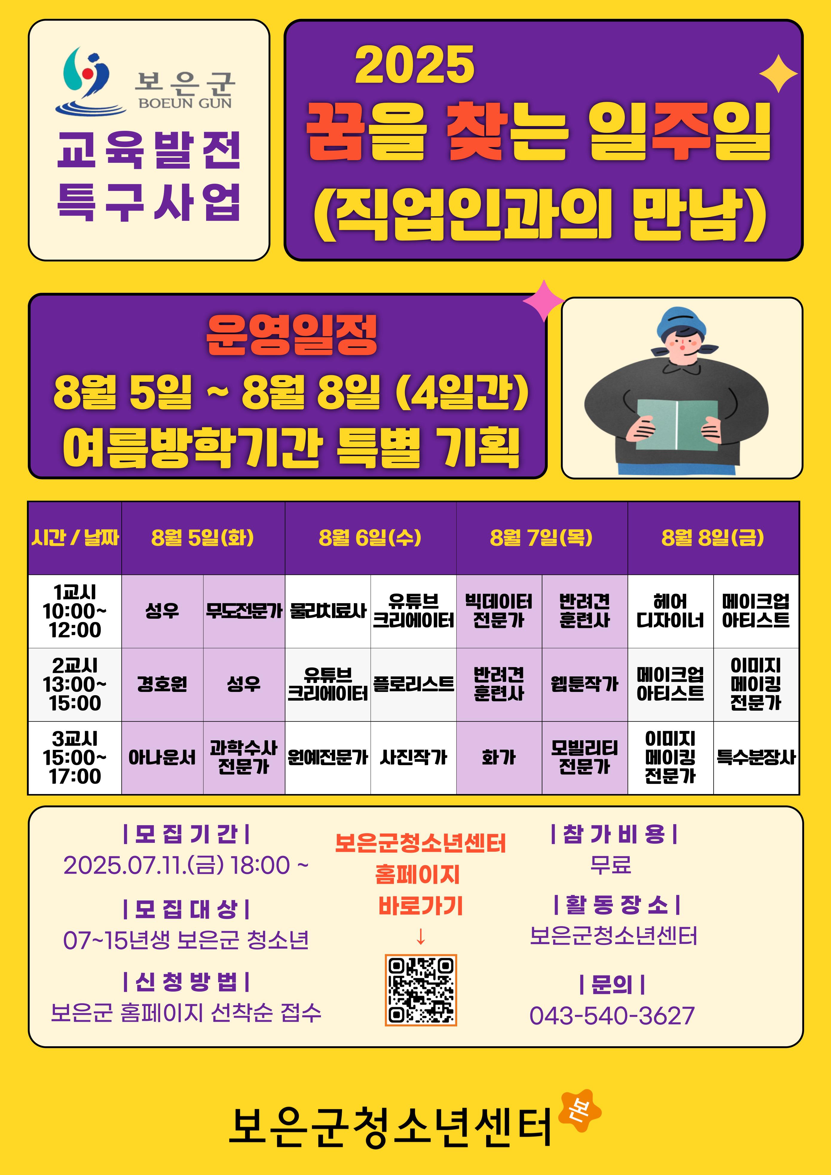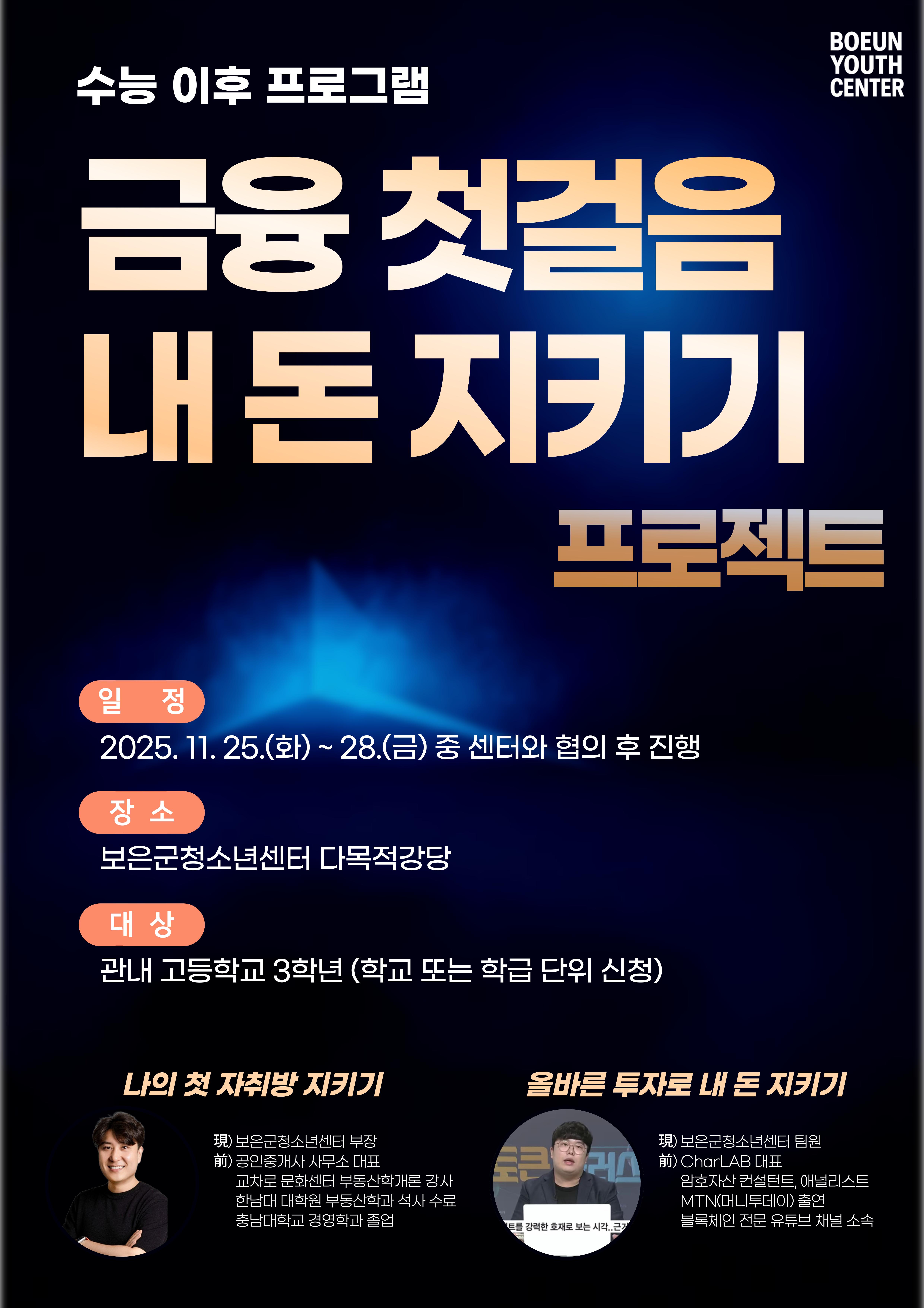 - 대상연령 : 보은군에서 거주 또는 재학중인 청소년