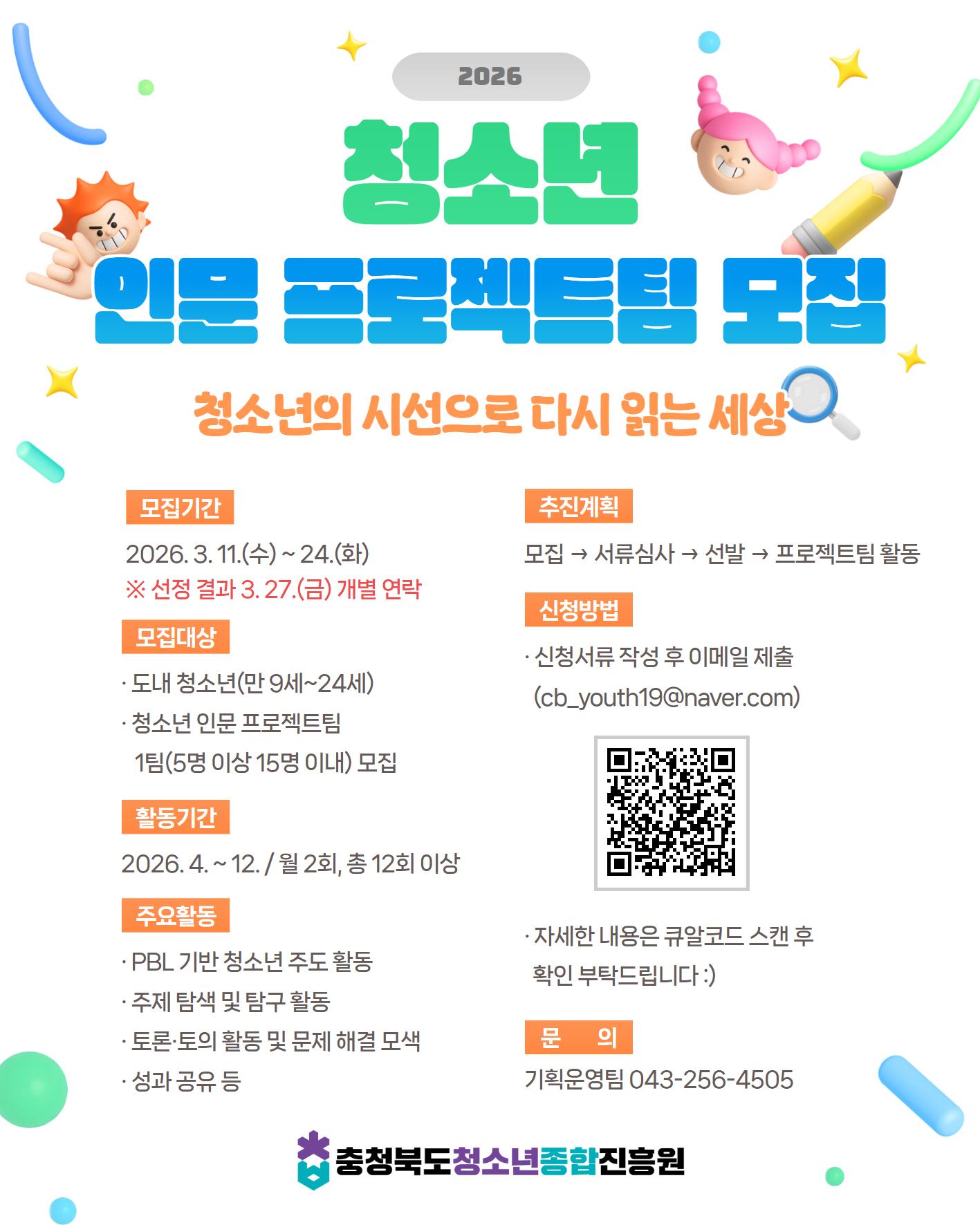 📢 2026년 충청북도 청소년 인문 프로젝트팀 모집!