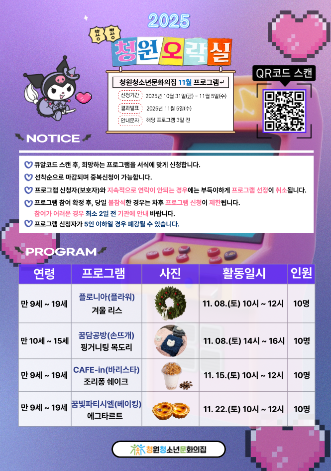 2025년 청원청소년문화의집 11월 뿅뿅 청원오락실