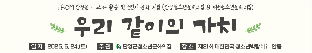 단양 청소년 여러분들의 많은 관심과 참여 부탁드립니다!